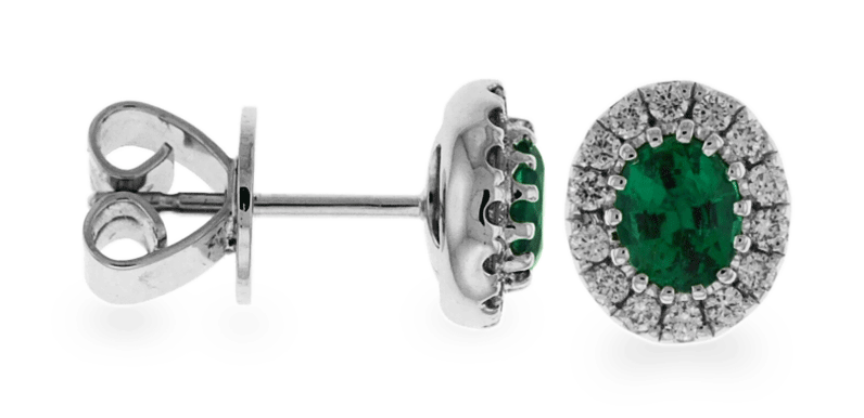 This stunning lush green emerald earring is made especially from Carnation Designs Signature. It features one oval cut the most radiant green emerald in center that is surrounding by small round cut brilliant diamonds pave set in 18k white gold. It can be worn at any time with perfect match for any wardrobe.