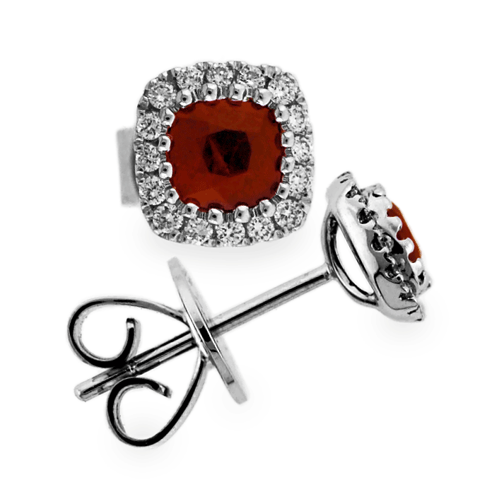 This amazing ruby earring is made especially from Carnation Designs Signature. It features one cushion shape cut the most radiant red ruby that is surrounding by small round cut brilliant diamonds pave set in 18k white gold. It can be worn at any time with perfect match for any wardrobe.