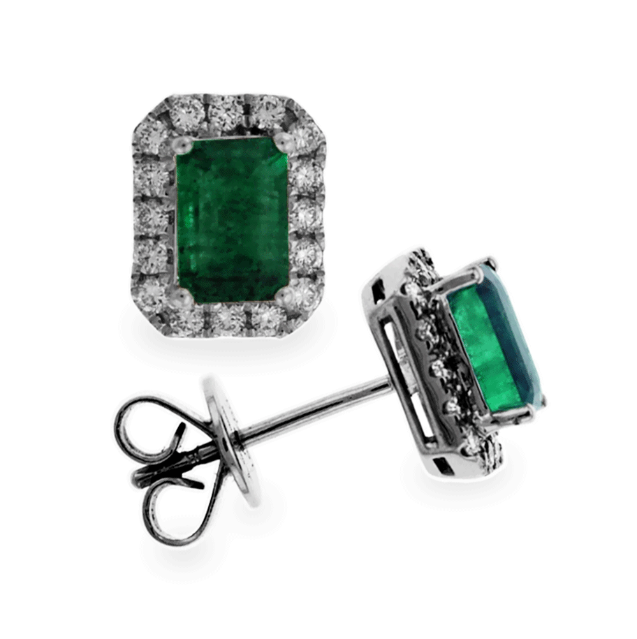 This incredible earring is made beautifully from Carnation Designs Signature. It features the collection of same quality of small round-cut brilliant diamonds and emerald-cut lush green emerald in center pave set. This 18k white gold classy earring is for any wardrobe to add your loveliness. You will love to wear it forever!!!